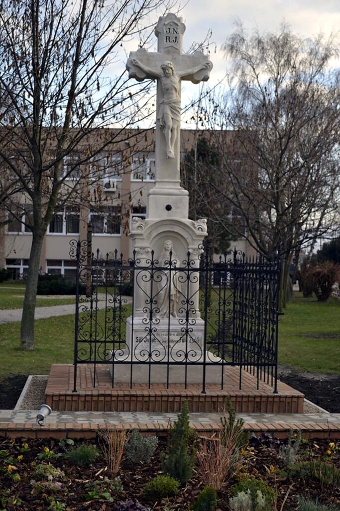 Korábban a falu északkeleti részén állt, a falun kívül, a pozsonyi út mellett (GPS: 48.103903, 17.345230). 2015. december 11-én helyezték át a Vám térre, ekkor került sor az újraszentelésére. Az újraszentelésésen részt vett a Magyar Országgyűlés elnöke, Kövér László is (aki személyes támogatója volt a szoborfelújításnak), akit Őry Péter, a település polgármestere üdvözölt. Az ünnepségen részt vett Czimbalmosné Molnár Éva, Magyarország rendkívüli és meghatalmazott pozsonyi nagykövete, továbbá az egyház képviselői. A szobrot Masicza Róbert, a község plébánosa áldotta meg.