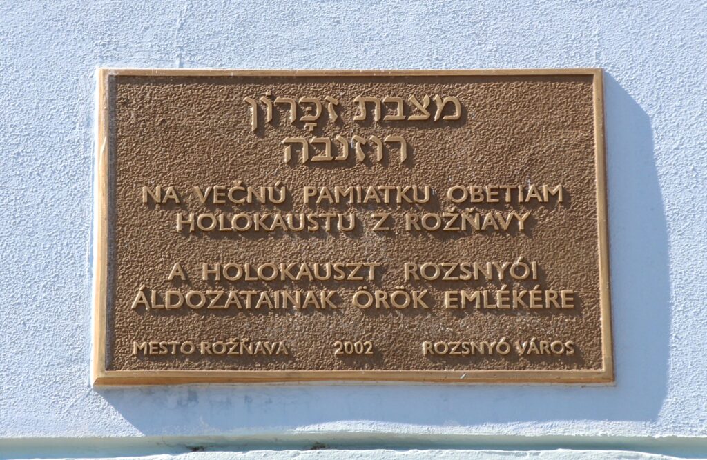 Rozsnyón 2002-ig semmi sem emlékeztetett arra, hogy a városban valamikor zsidók éltek. A városvezetés az 1970-es években még a zsidó temetőt is felszámolta, s az eredetileg onnan elszállított síremlékeknek is fokozatosan nyoma veszett. A városban többszöri próbálkozás után csak 2002-ben sikerült elérni, hogy egy fémből öntött kisméretű kétnyelvű emléktáblát helyezzenek el a rozsnyói holokauszt áldozatainak emlékére a városháza falán. A rozsnyói holokauszt-emléktábla elkészítésében nagy része volt az innen elszármazott Lebovits Istvánnak: …Lebovits István (Rozsnyó 1922. október 10.) Lebovits Mendel, harminckétéves rozsnyói hitközségi kántor és Dicker Fanny huszonhétéves háztartásbeli első gyermekeként látta meg a napvilágot. (…) az USA-ban telepedett le és külkereskedelemmel foglalkozott. Üzleti kapcsolatai révén gyakran és szívesen jár vissza Rozsnyóra. Szomorúan tapasztalta, hogy Molnár Béla és Lucsko Lajos városvezetők működése idején eltűnt minden zsidó kultúrtörténeti emlék. Emiatt is az 1960-as években kezdeményezője és támogatója a holocaust rozsnyói mártírjainak emlékét idéző emlékmű felépítésének. A többszöri ígérgetések után javaslatáról lassan megfeledkeztek. 2002-ben újból felajánlotta a segítséget és néhány helybéli lakos közreműködésével a több mint négyszáz rozsnyói holokauszt-áldozatnak ötvennyolc év után emléktáblát sikerült felállítania az ódon városháza falán.