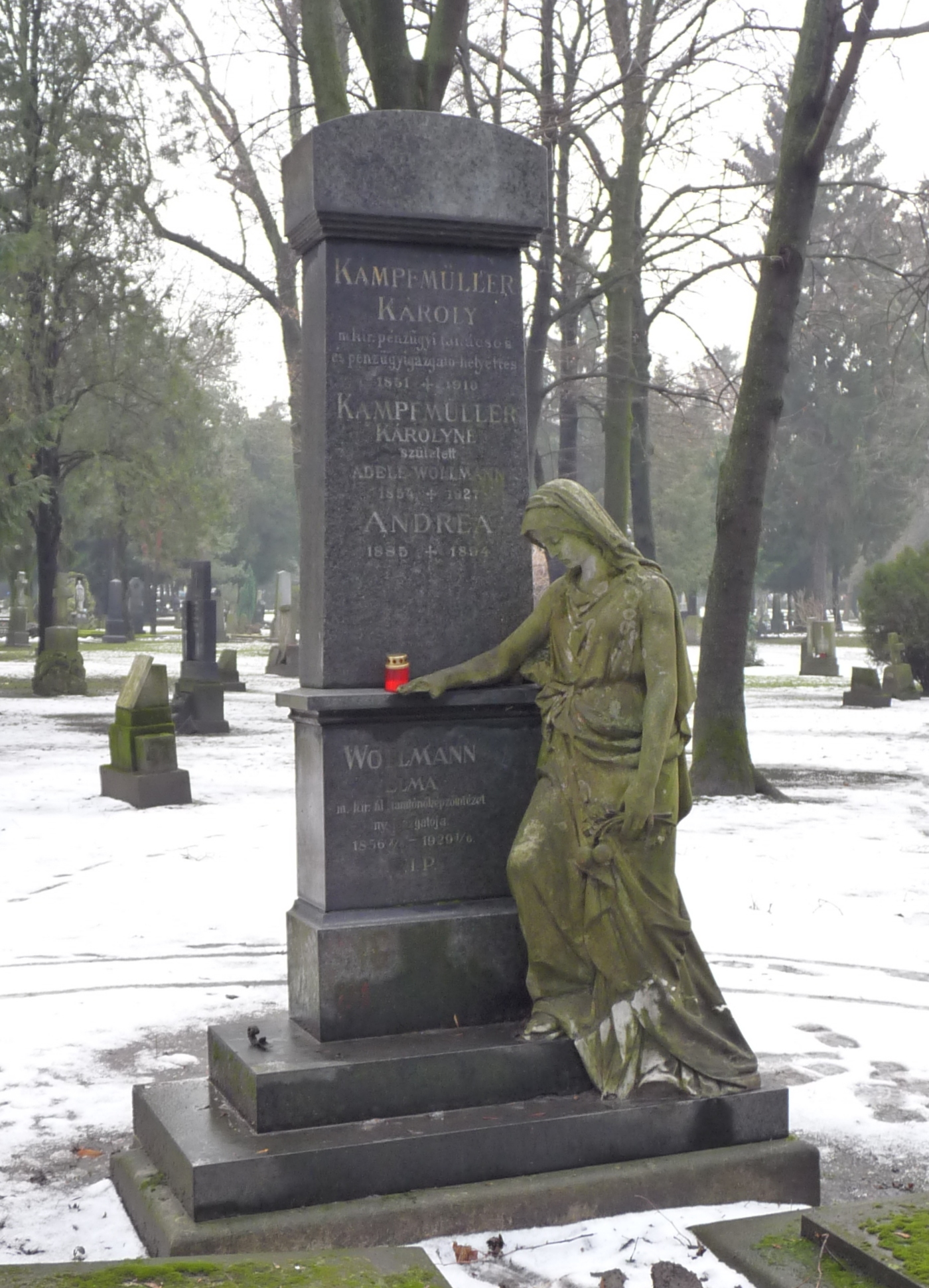 Rigele Alajos alkotása a Szent András temető védett értékeinek listáján Kampfmüller Károly síremlékeként szerepel (III/3-as szektor), de nem csak ő, hanem felesége, gyermekként meghalt lánya és sógornője, Wollmann Elma is itt van eltemetve.