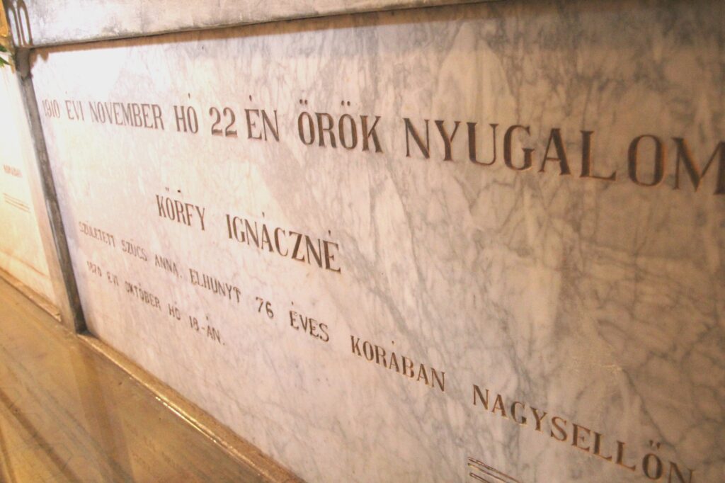Helyszín, címA Szent Erzsébet templom kriptájának jobb oldalán, Kőrfy Ignácz sírja alatt található.