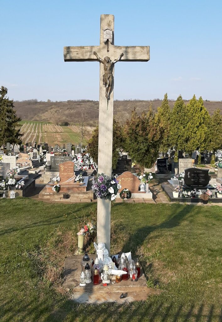 Ez a kereszt az 1976-ban elkészült új temetőben található. A község állította fel. Ekkor épült meg a halottasház is. Azóta nincs virrasztás a halottak felett.