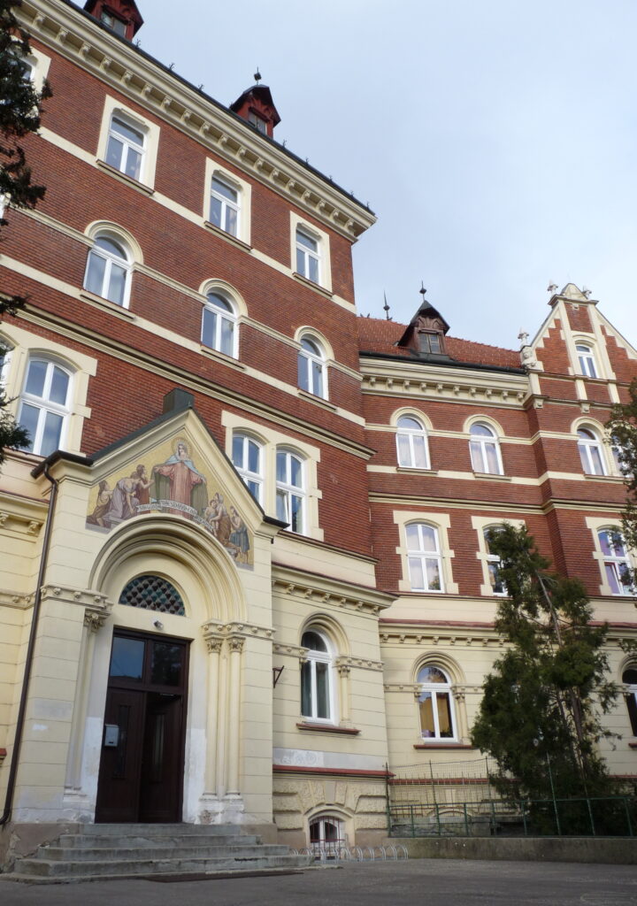 A pozsonyi árvaházat 1831-ben alapították, de ekkor még nem mai helyén működött. Az Újváros festői helyén, a környező domborzat által kijelölt vonalú Mély út oldalában, teraszon elhelyezkedő, ma is fennálló épületét 1900-ban emelték Melzer S. tervei alapján, eklektikus stílusban. A nem teljesen szimmetrikus kialakítású, középen tompa szögben megtört tengelyű alaprajz leghangsúlyosabb eleme a vaskos toronyként megfogalmazott, négytengelyes középső tömb, melyben a főbejárat is nyílik. A portál fölötti mozaikképet Lotz Károly alkotta. A kontyolt nyeregtetős épület tetősíkját számos, jobbára díszítő jellegű tetőépítmény, ablak, tornyocska teszi változatossá. A vakolatlan, vörös téglás épületnek csak földszintjén, párkányain és nyílászáróinak keretezéseként találunk vakolt felületeket. Az épületben, amelyet 1893-tól a Paulai Szt. Vince-rendi irgalmas nővérek vezettek, helyet kapott egy kápolna is, melyet a Szeplőtelen Szűz nevére avattak fel.