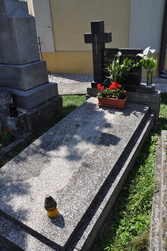 Moksó János nagyabonyi és hodosi esperes (1975–90) sírja a nagyabonyi templomkertben.