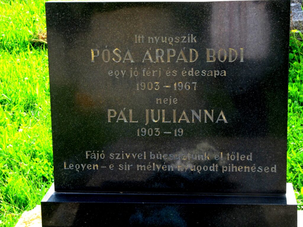 Pósa Lajos költő oldalági leszármazottja, Pósa Árpád síremléke a szülőfaluban (Balogvölgy)