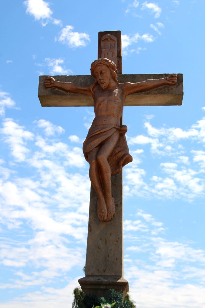 Az 1752-ben emelt, 1900-ban felújított feszület a református templom előtti tér mellett, a körforgalomban található.
