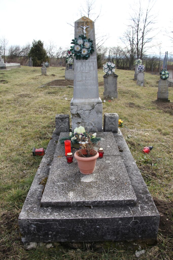| Felirat | Itt nyugszik / Istenben boldogult / Felejthetetlen gyermekünk / VOLKOVICS/ LÁSZLÓ / szül. 1929. ápr. 14. / megh. 1945 jan 13. / élt 16 évet / Nyugodjék békében/ a / Boldog viszontlátásig! |