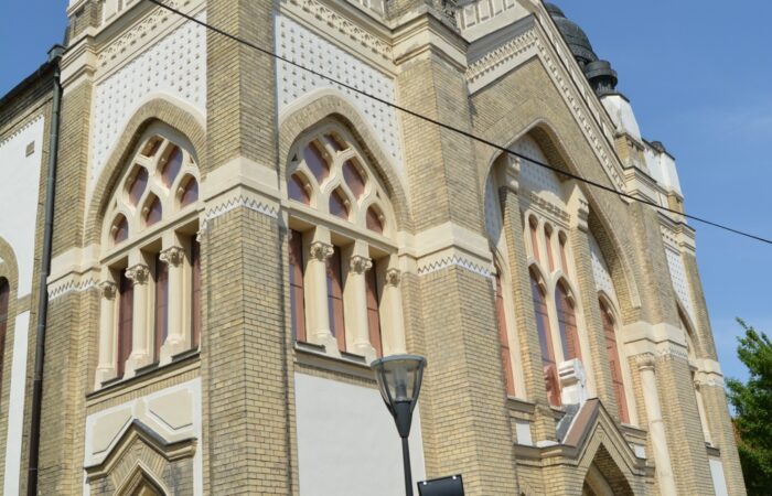 A zsinagógát 1825-ben építették. Stílusjegyei alapján valószínűsíthető, hogy Baumhorn Lipót (Kisbér, 1860. december 28. – Kisbér, 1932. július 8.) munkája. 1904-ben újították fel, ekkor nyerte el jelenlegi formáját, szecessziós és orientális elemeket vegyítve. A környéken egyedüliként állt a zsidóság szolgálatában, egészen 1948-ig. 1953-tól már csupán magtárként, majd vegyi anyagok raktáraként szolgált, telente pedig fenyőfákat tároltak...