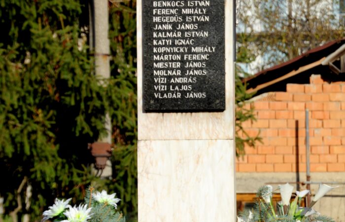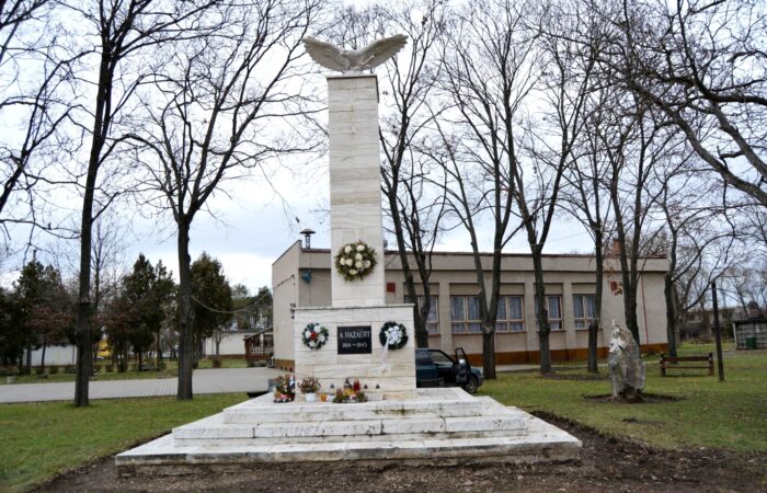 Az első és második világháború sok áldozatot követelt. Az ő emléküket őrzi az 1993-ban a ravatalozó mellett közadakozásból felállított emlékmű. Itt olvashatjuk a falu minden háborús áldozatának nevét, de emléket állít azoknak az ismeretleneknek is, akik a háborúban a faluban vesztették életüket és itt lettek eltemetve. Az emlékművet egy emelt térre építették. Két falból áll....
