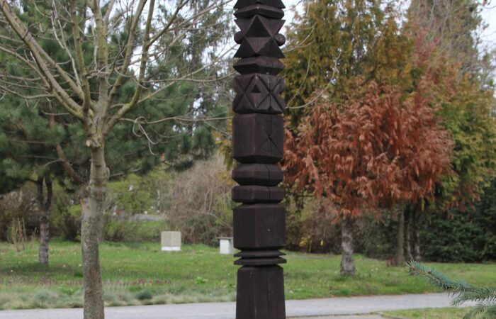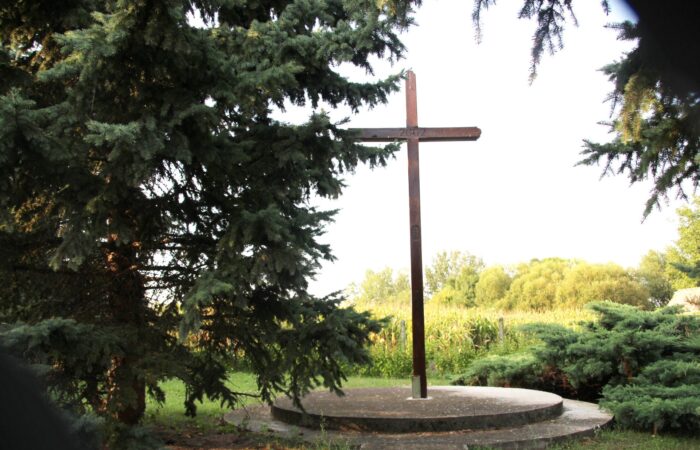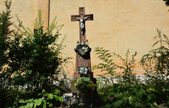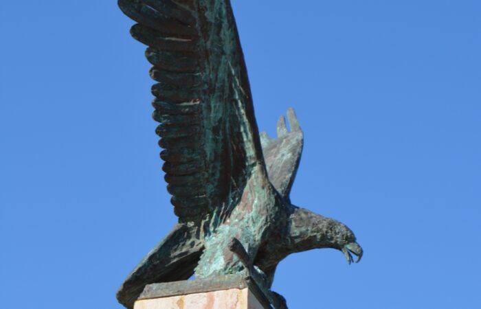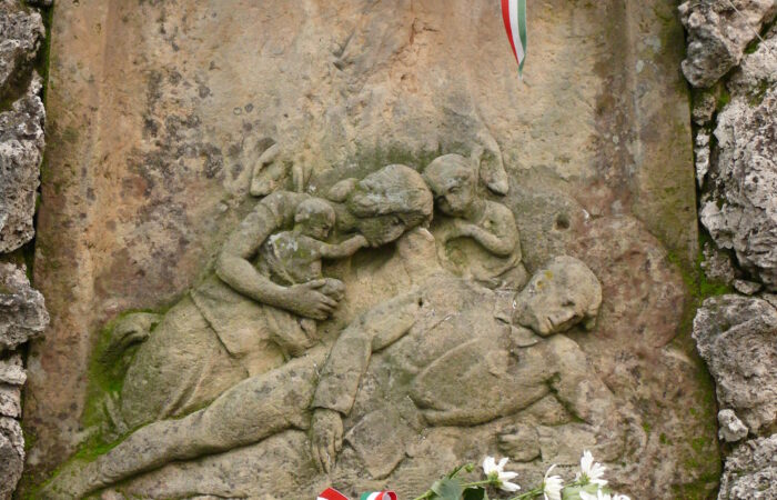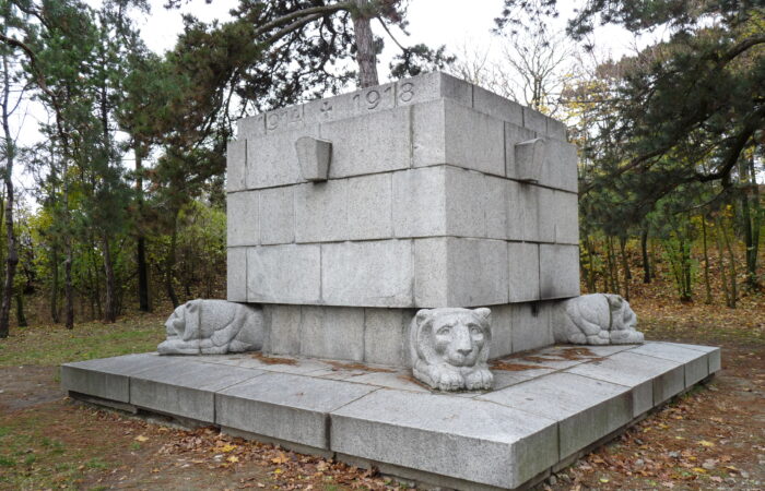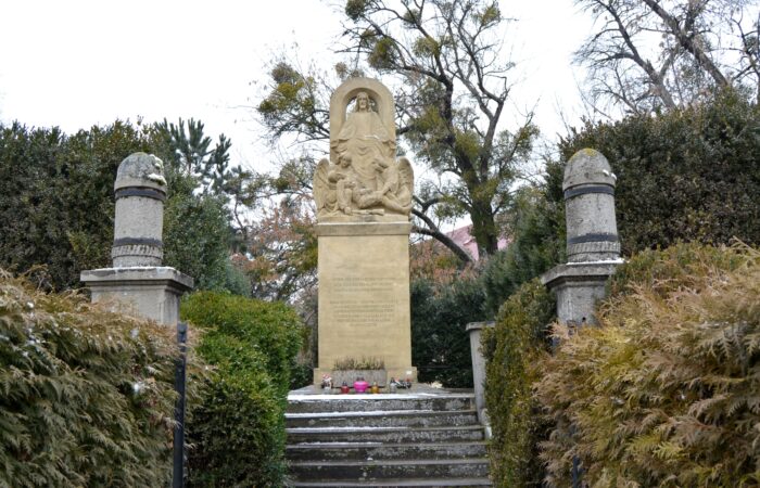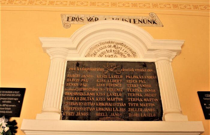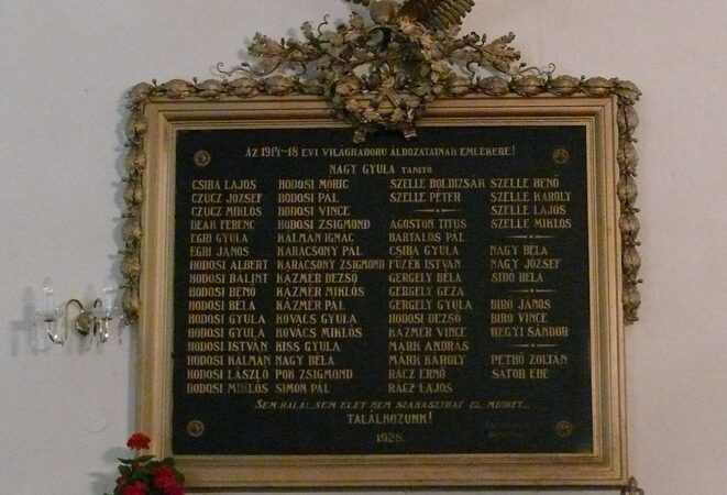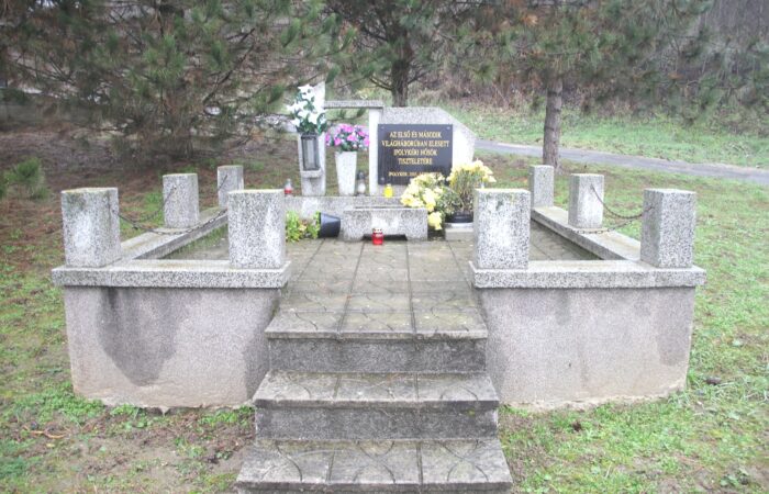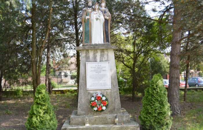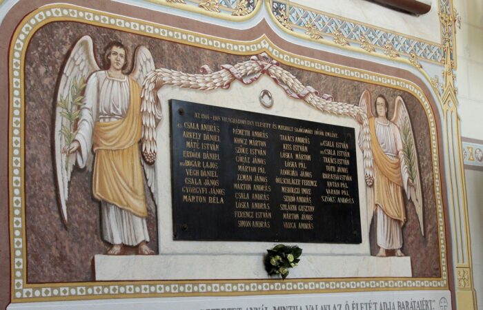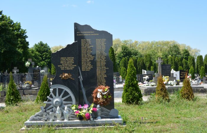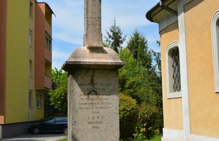 A kovácsoltvas kerítéssel övezett emlékműhöz néhány lépcsőn lehet feljutni, a bejárat két oldalán, az ajtókeretül szolgáló oszlopok tetején egy-egy stilizált beton löveg, rajtuk, vaspántokól kialakított zászlótartók. Maga a szobor az óvóan széttárt kezű Jézust ábrázolja, előtte két angyallal, akik egy haldokló katonát tartanak karjaikban. Jézus feje fölött félkörívben egy idézet olvasható Máté evangéliumából: MIVELHOGY A...