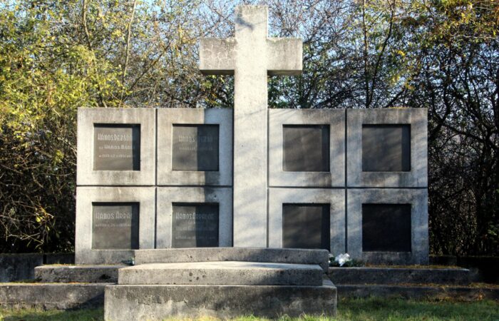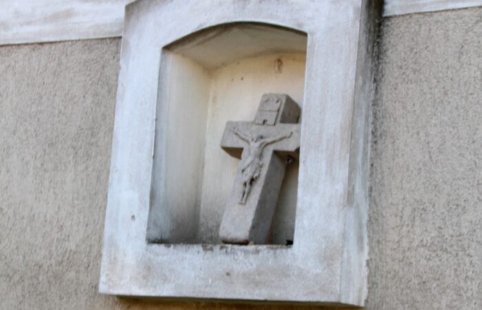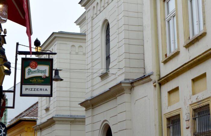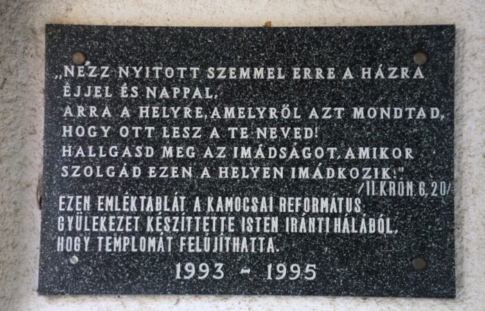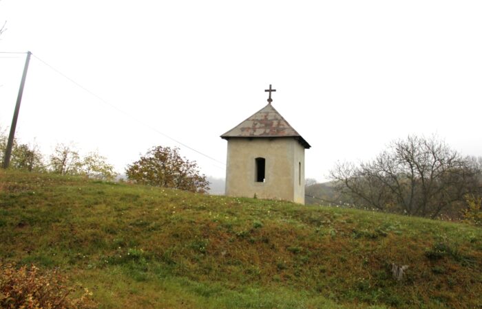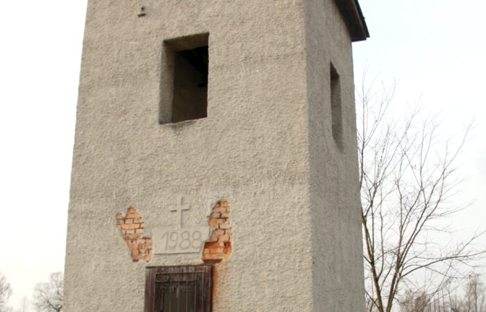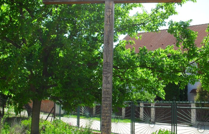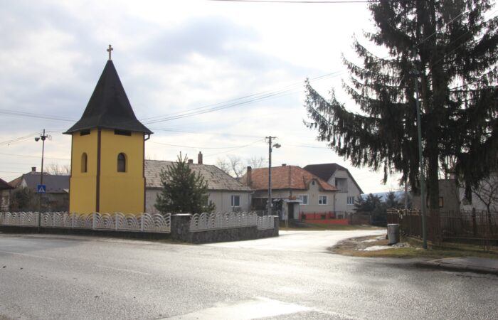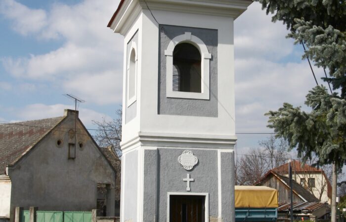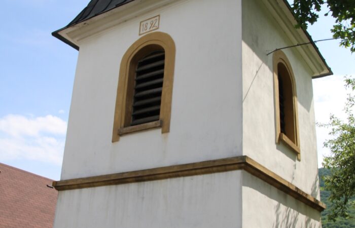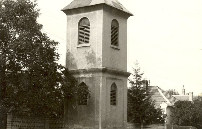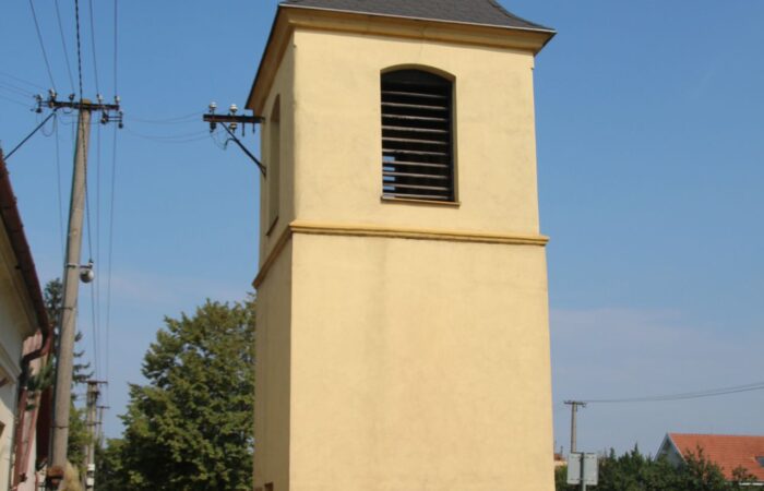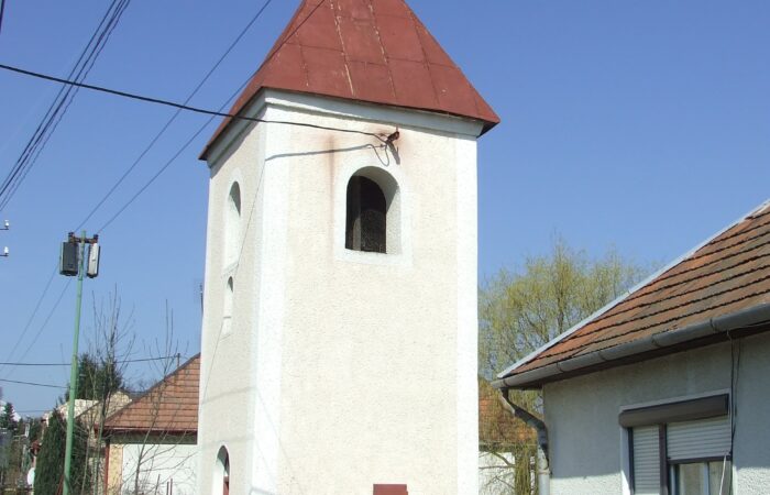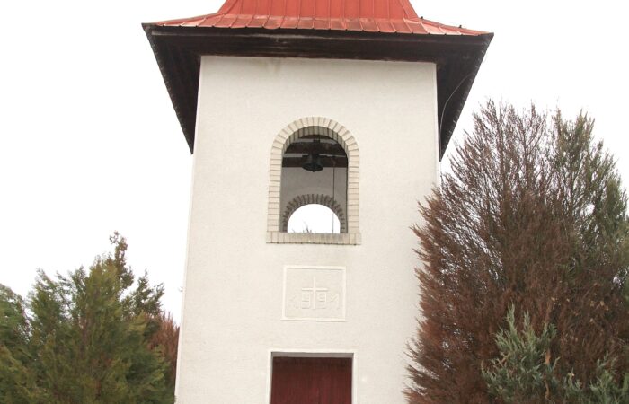 A harangláb 1923-ban épült, magas, sudár épület, négyszögletes alapon, alacsony sátortetővel. Sarkait falsávok képezik égetett téglából, a három szintet két övpárkány választja el egymástól. A harangtorony felső részének mindegyik oldalán félköríves hangnyílások vannak, keretelésben. Az alsó részben szoborfülke van Pieta-plasztikával, fölötte az Úr színeváltozásának domborműve, oldalain Mózes és Illés alakjaival. A márványdombormű Mária Terézia Fadrusz-féle...