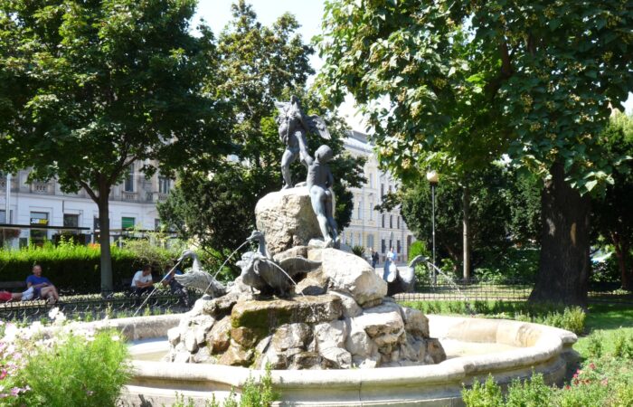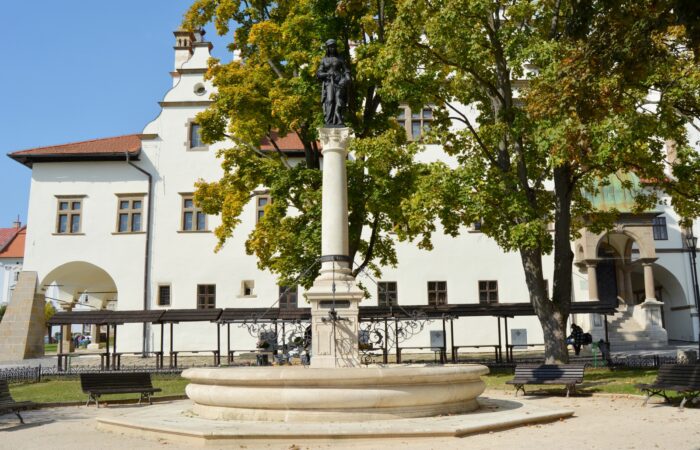 A szökőkút a Régi városháza, ma a Szepesi Múzeum épülete mellett áll, egy 4–5 méter magas oszlop tetején. Az alkotás Herrmann Gusztáv adományából épült Steinhausz László tervei alapján. Herrmann Gusztáv 1817–1898, Lőcse város és az evang. gyülekezet nagy mecénása, a város díszpolgára. Nagykereskedő-vállalkozó, jelentős vagyonát Lőcse fejlesztésére fordította. Herrmann Gusztáv Besztercebányán született, fűszerkereskedelemmel foglalkozott. A...
