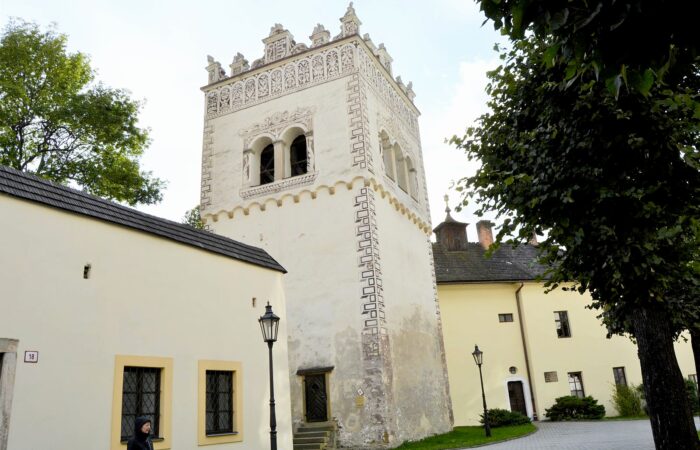 A Szent Kereszt templommal szemben áll az 1591-ben épített reneszánsz harangláb, mely a Szepesség legszebb műemlékének van kinyilvánítva. Hasonló haranglábakat találunk a környéken lévő városokban, falukban, pl. Poprád, Őrlak, stb. A késmárki toronynak kvadratikus az alprajza, díszítve van cimburmmal, a Habsburg család címerével, a magyar címerrel és Késmárk város címerével. A legöregebb harang 1525-ből származik...