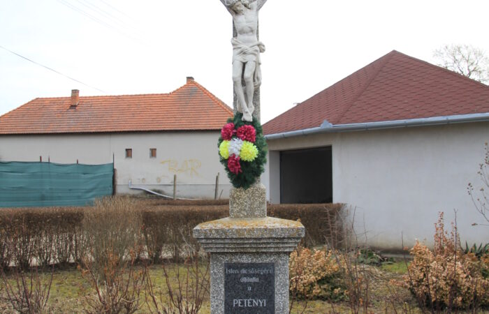 Egy műkőből készült út menti kereszt látható a 170. számú ház telkén. Rajta öntöttvas korpusz s az alábbi felirat van: Isten dicsőségére állította a PETÉNYI család.