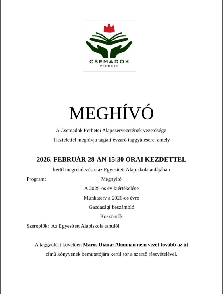A Csemadok Kassai Városi Választmánya szeretettel várja Önöket 2026. február 3-án, 17:00 órai kezdettel a Csemadok-székház emeleti termében a magyar kultúra napja alkalmából megrendezésre kerülő programokra: ⏩️ „Nyelv és lélek: miért érték a magyar?” Külföldiek szemével és saját tapasztalatainkon keresztül – nyelvi érdekességek, kulturális üzenetek, interaktív játék - dr. Fodor Áron, magyar nyelvi lektor előadása - Magyar Nyelv és Kultúra Intézete, Nemzeti Kisebbségek Nyelve és Kultúrája Központ, Eperjesi Egyetem Az est további közreműködői: ⏩️ Bartók feldolgozásokat adnak elő Pollag Ádám szaxofonon és Oláh Péter zongorán, ⏩️ Őszirózsa énekcsoport,…