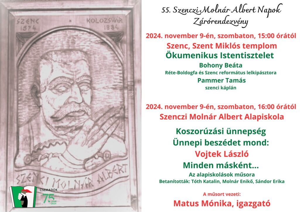 Mindenkit szeretettel várunk az 55. Szenczi Molnár Albert Napok zárórendezvényére.
