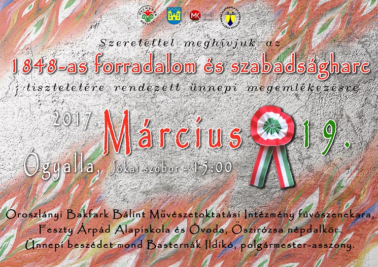 2017. március 19-én, Ógyallán, 15.00 órakor a Jókai szobornál.