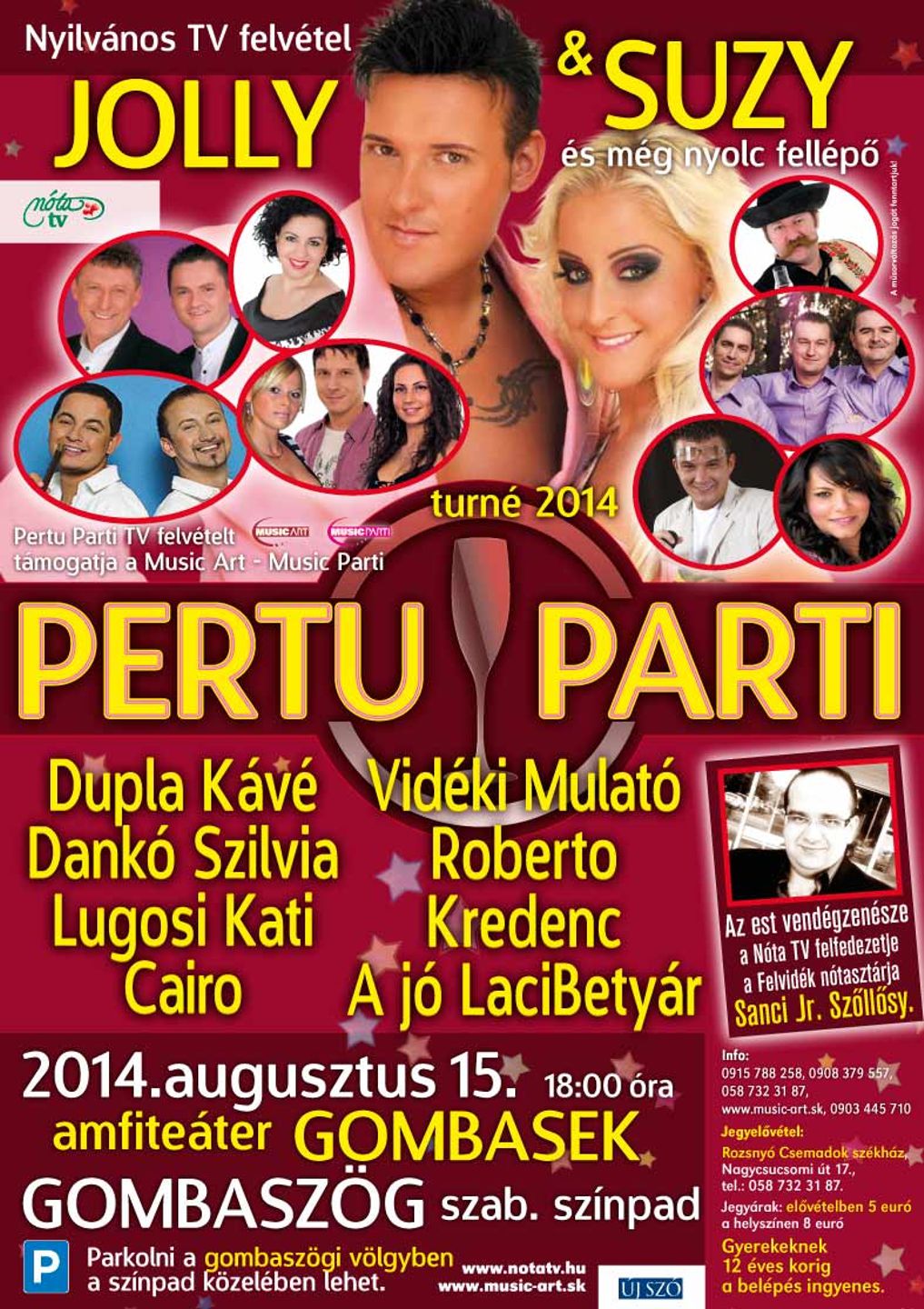 turné 2014: PERTU PARTI – JOLLY and SUZY és még nyolc fellépő: Dupla Kávé – Vidéki Mulató – Dankó Szilvia – Roberto – Lugosi Kati – Kredenc – Cairo – A jó LaciBetyár – az est vendégzenésze a Nóta TV Feltedezettje, a Felvidék nótasztárja Sanci Jr. Szőllősy