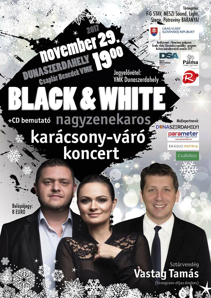 2017. november 29-én, szerdán, 19 órai kezdettel szervezik meg a Black & White zenekar karácsonyváró koncertjét a dunaszerdahelyi Csaplár Benedek Művelődési Központban. Sztárvendég Vastag Tamás.