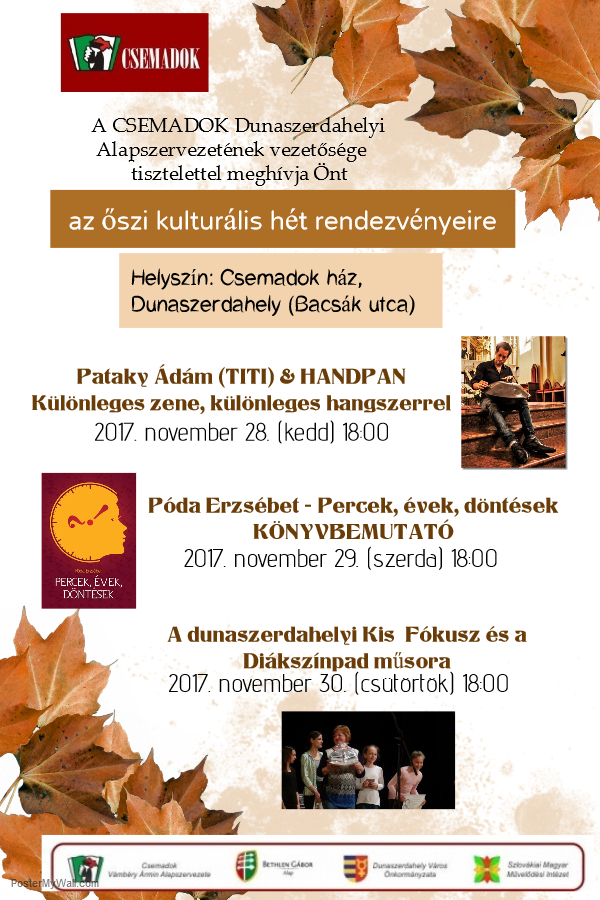A Csemadok Vámbéry Ármin alapszervezete 2017. november 28-30-a között rendezi meg őszi kulturális hetét.