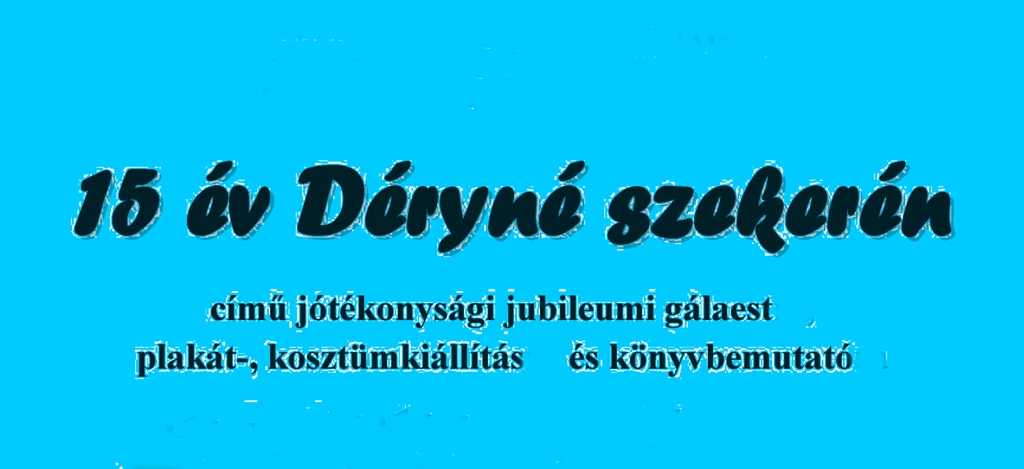 A Teátrum – színházi polgári társulás és a Városi Művelődési Központ szeretettel meghívja Önt és kedves családját 15 év Déryné szekerén című jótékonysági jubileumi gálaestre, plakát-, kosztümkiállításra és könyvbemutatóra