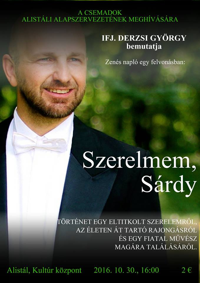 A CSEMADOK Alistáli Alapszervezete szeretettel várja ifj. Derzsi György zenés előadására, melyet 2016. 10. 30-án 16:00 órától tekinthetnek meg az alistáli Sport- és kultúrközpontban.