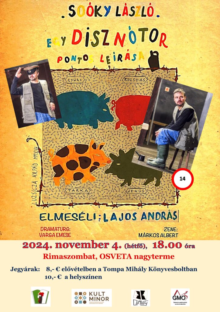 Az „Egy disznótor pontos leírása“ folytatása annak a sorozatnak, mely A nagy (cseh)szlovákiai magyar csönddel kezdődött. Csak míg ez utóbbi a második világháború utáni évek tragikus eseményeit vizsgálja, addig a „Disznótor“ a 70-es évek, a prágai tavaszt követő konszolidációs időszakot eleveníti fel. Soóky László végtelen könnyedséggel és humorral beszél az „ideiglenes“ szovjet megszállásról, az átvilágításról, a szabadság ideájáról, valamint a közösség szabadságra való képtelenségéről. Az előadás műfaját tekintve „mesélőszínház“, tehát színész történetmesélésén keresztül kapunk képet a világról. A színész ebben az esetben a felvidéki (dunamocsi) származású Lajos András, a Miskolci Nemzeti Színház tagja.