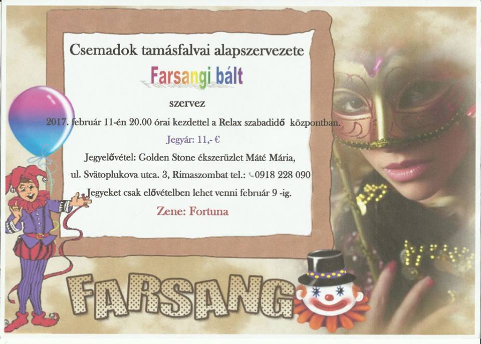 2017. február 11-én, 20.00 órakor a Csemadok alapszervezete szervezésében.
