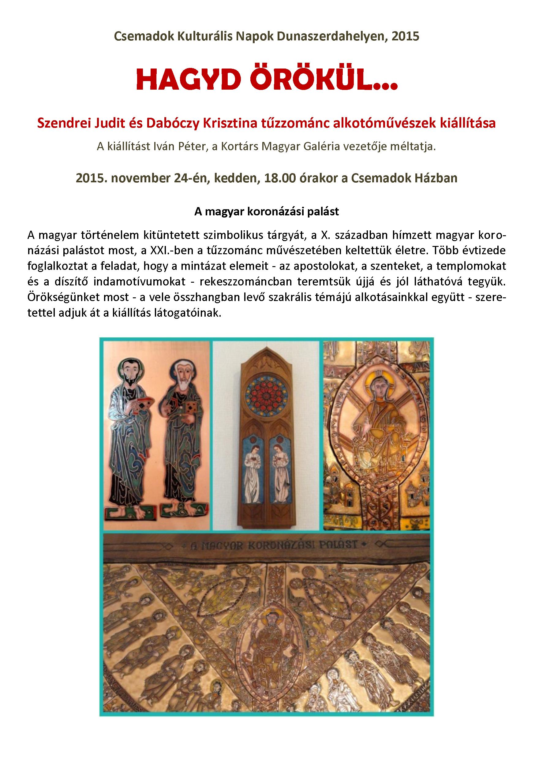 HAGYD ÖRÖKÜL… Szendrei Judit és Dabóczy Krisztina tűzzománc alkotóművészek kiállítása Dunaszerdahelyen