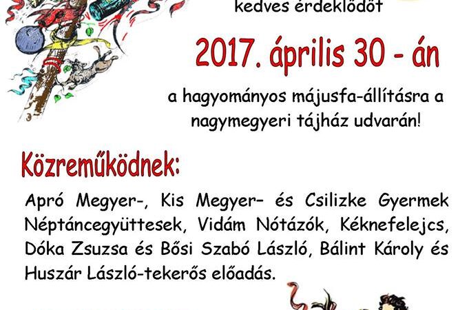 Sok szeretettel várunk mindenkit 2017. április 30-án, vasárnap 15:00 órától a hagyományos májusfaállításra a városi tájház udvarán!