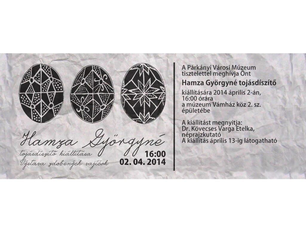 2014. április 13-án (vasárnap), 14.00 – 17.00 óráig