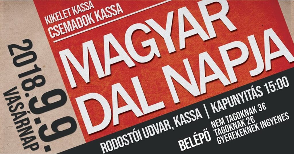 2018. szeptember 9-én, vasárnap, 15.00 órakor Kassán, a Rodostói udvarban, a Kikelet és a Csemdok rendezésében.