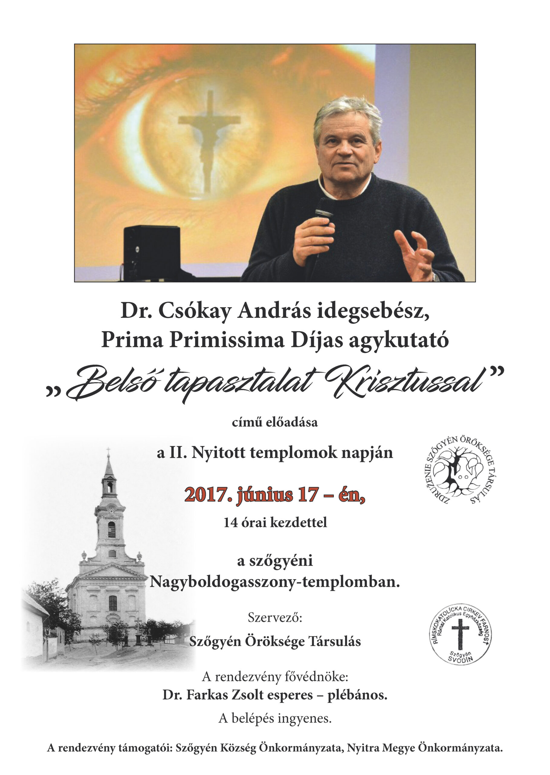 14,00 „Belső tapasztalat Krisztussal”- Dr. Csókay András idegsebész, agykutató előadása