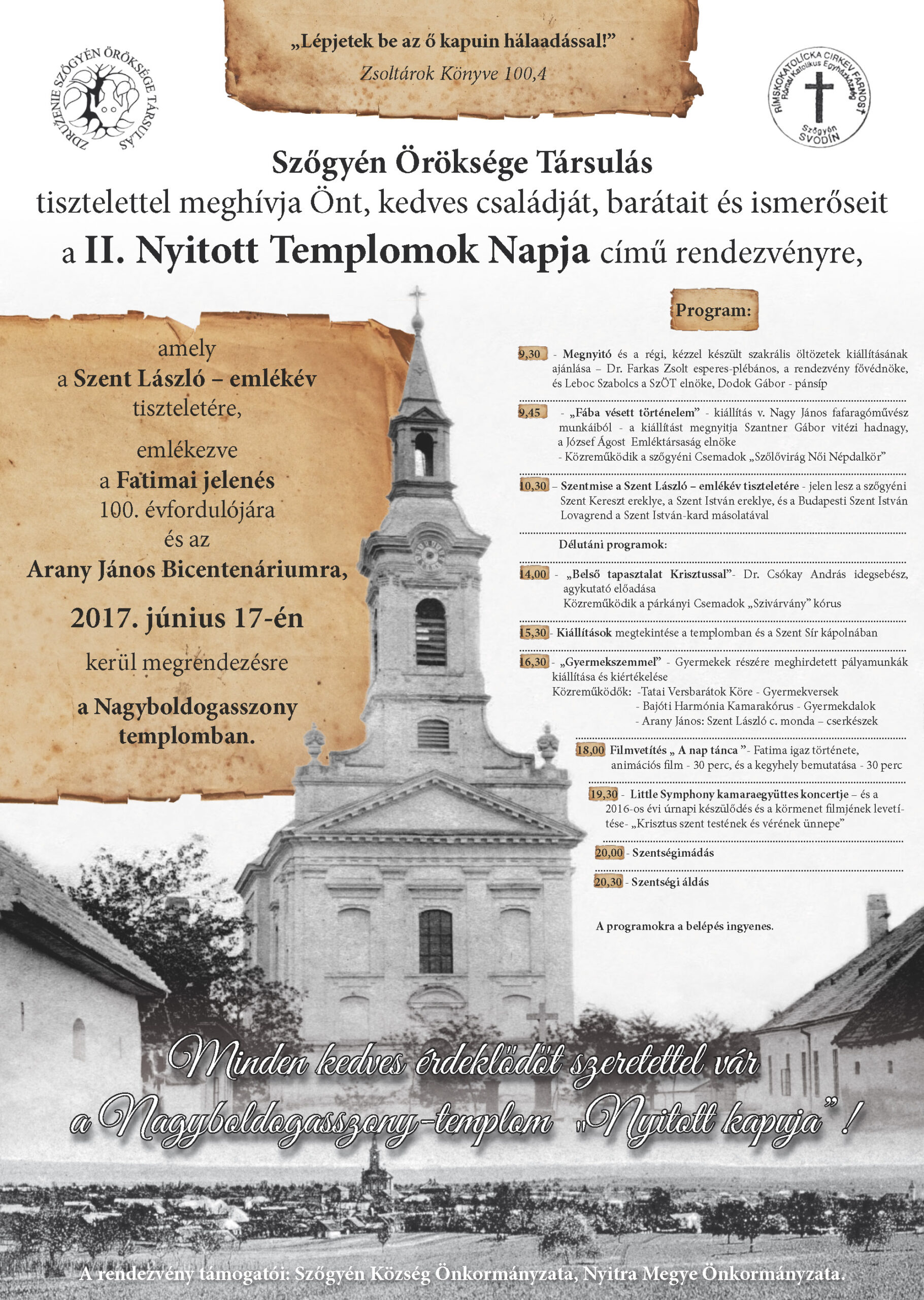 2017. június 17-én szombaton kerül megrendezésre a Nagyboldogasszony templomban.