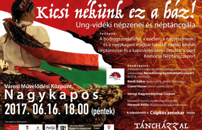 Tisztelettel várunk mindenkit a Kicsi nékünk ez a ház! – népzenei és néptáncgálára, amit egyben az Ung-vidéken lezajlott 2016/17-es Petoőfi Sándor Program ünnepélyes lezárásának szánunk!