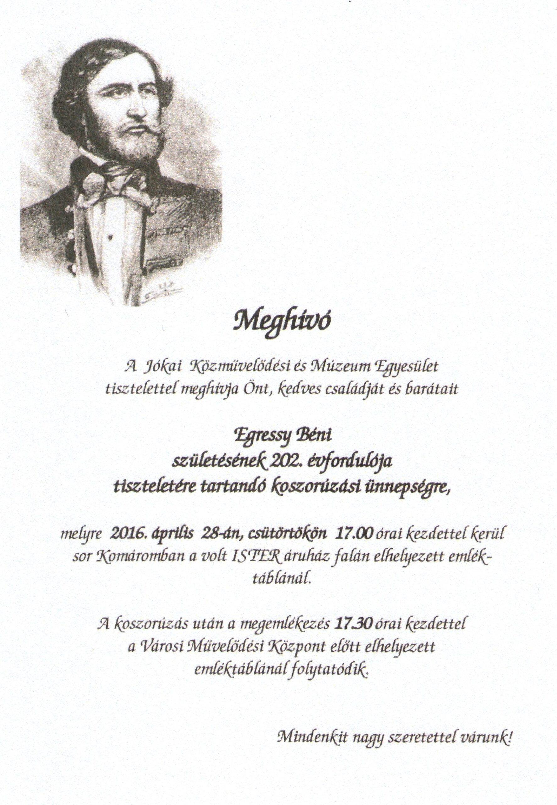 2016. április 28-án, csütörtökön, 17.00 órakor Komáromban az emléktáblánál, majd a vmk-nál