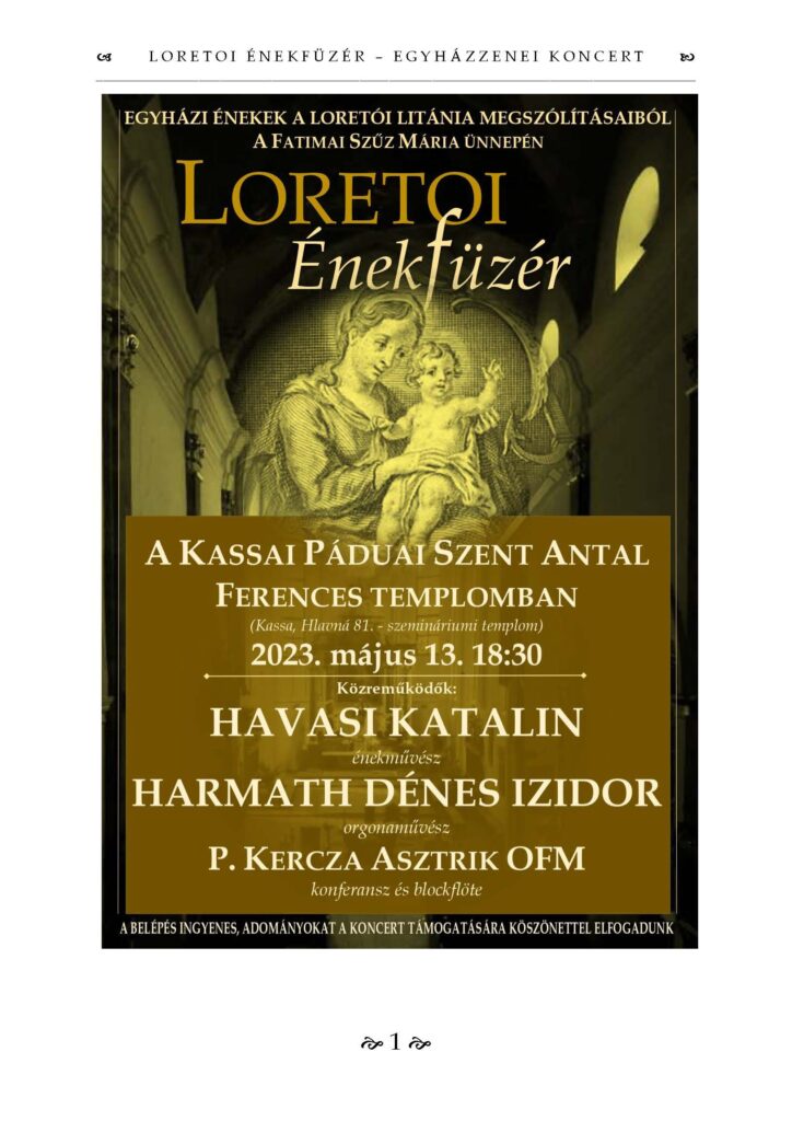 Helyszín: Szemináriumi Ferences templom (Kassa, Fő utca 81.)