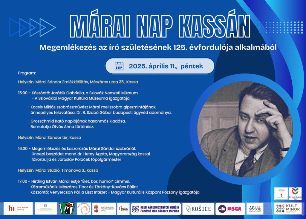 Tisztelettel hívjuk Önöket a Márai Sándor születésének 125. évfordulója alkalmából a feltüntetett helyszíneken megrendezésre kerülő emlékünnepségre.