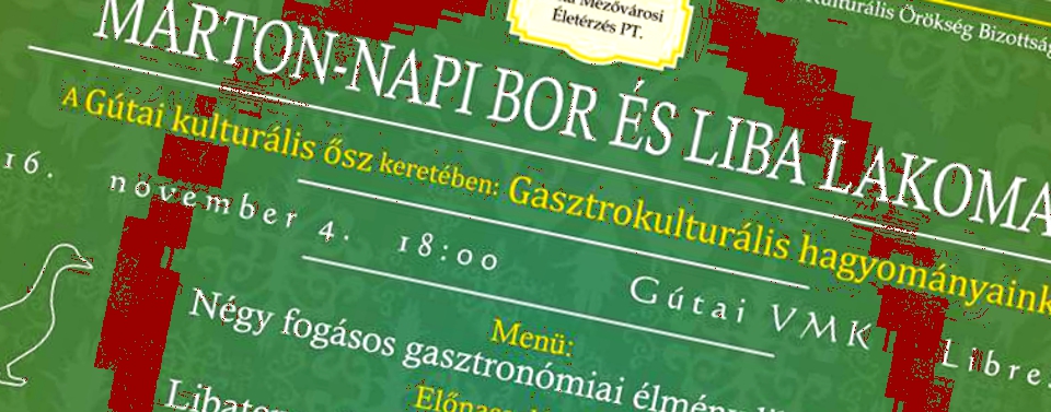 A Gútai Mezőváros Életérzés PT. a gútai VMK-val és az Önkormányzat mellett működő Kultura és Kulturális Örökség bizottságával bemutatja a Kulturális Ősz gasztrukulturális élményt nyújtó rendezvényét.