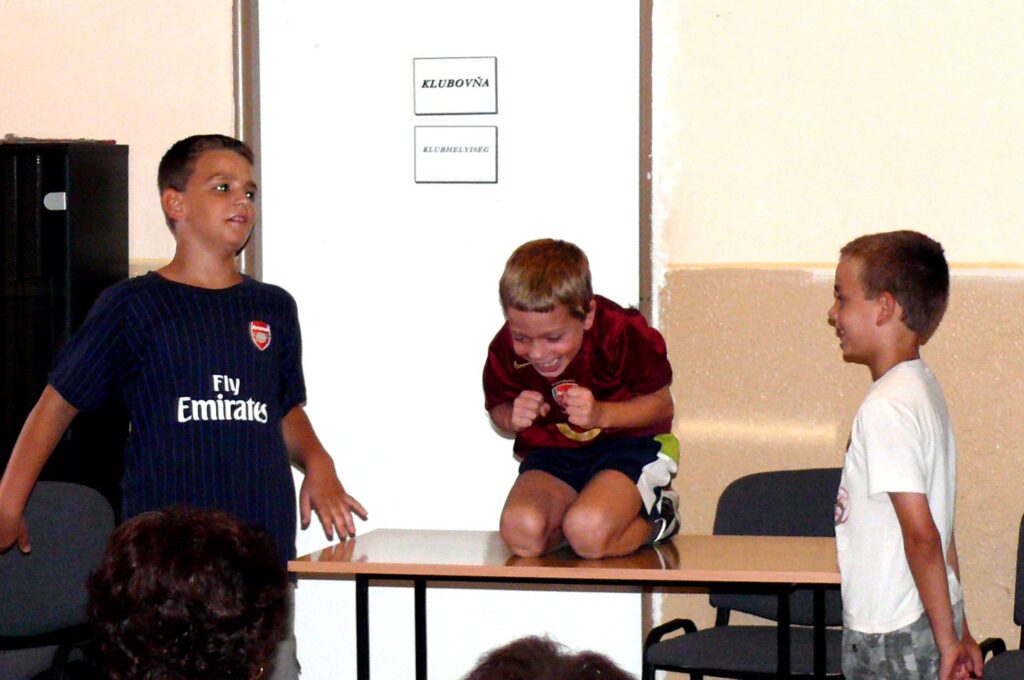 Program: drámajátékok, ritmusgyakorlatok, bizalomjátékok, témakeresés a közös előadáshoz, típusok, esetek, kapcsolatok, rávezető játékok, jelenetek kialakítása, próbák, ének