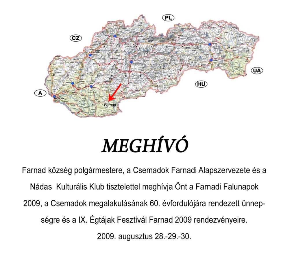 A Csemadok megalakulásának 60. évfordulója, a IX. Égtájak Fesztivál Farnad 2009 és a Farnadi Falunapok 2009 rendezvényei