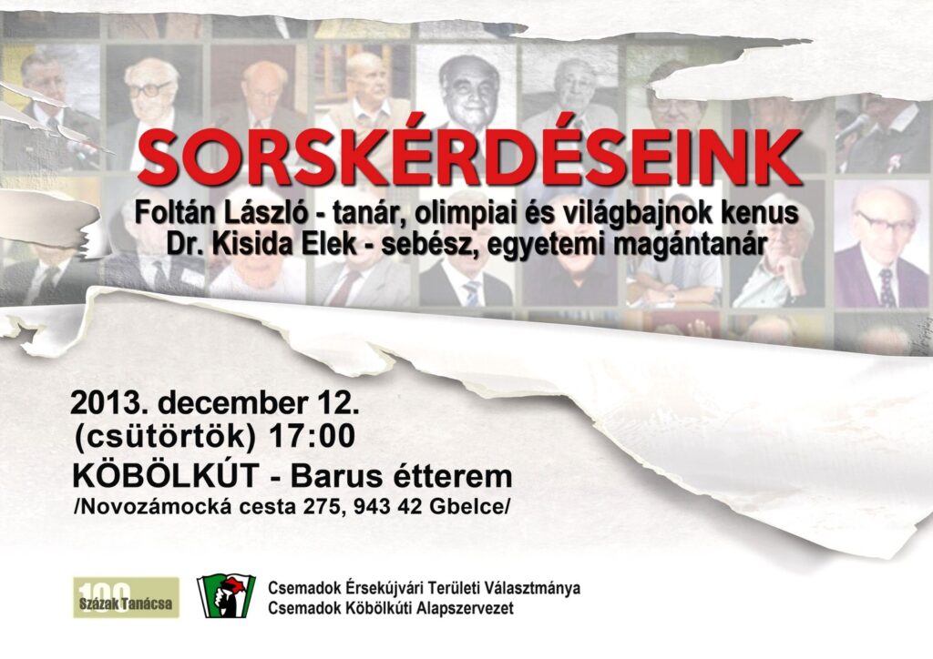 Előadók: Foltán László – tanár, olimpiai és világbajnok kenus; Dr. Kisida Elek – sebész, egyetemi magántanár