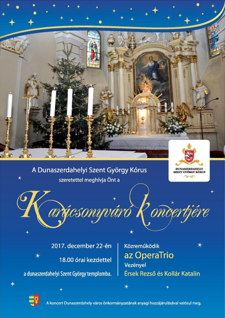 A Dunaszerdahelyi Szent György Kórus 2017. december 22-én, pénteken 18 órai kezdettel szervezi meg a karácsonyváró koncertjét a dunaszerdahelyi Szent György templomban.