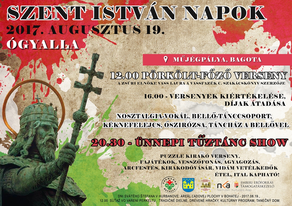 2017.  augusztus 19-én és 20-án Ógyalla Városa és a Csemadok Szent István Napokat rendez, amelyre tisztelettel meghív mindenkit.
