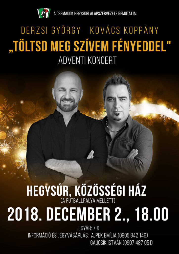 „Töltsd meg szívem fényeddel” – Derzsi György és Kovács Koppány adventi koncertje Hegysúron.