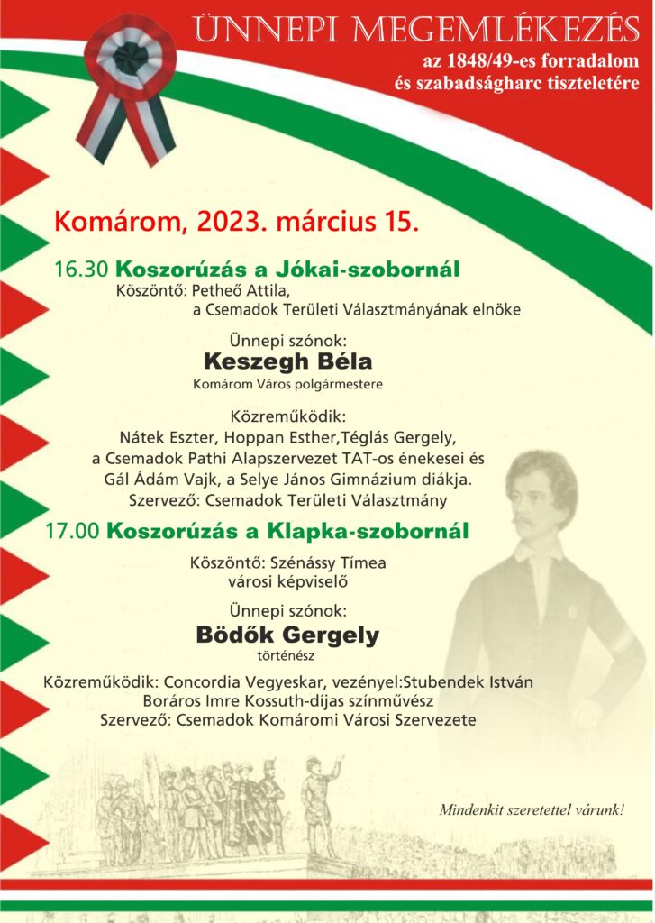 Ünnepi megemlékezés az 1848/49-es forradalom és szabadságharc tiszteletére Komáromban