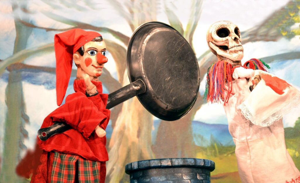 Szükségünk van olyan szerethető példaképekre, akik legalább képzeletünkben vagy akár a bábszínházban jól elagyabugyálják azt, aki rosszat tesz velünk s a világgal. S ez a valaki most itt van s nemes egyszerűséggel csak Vitéz Lászlónak hívják! A hagyományos vásári bábjátékban a pirossapkás, vidám fickó palacsintasütőjével tanítja móresre az ördögöket és magát a halált is. Sziporkázó, életvidám kesztyűs bábjáték ez, melyet a vásári mutatványok előznek meg. Ki Vitéz László, szó szerinti „jobb keze” történetünkben? Nem más, mint Pályi János, aki ebben az előadásban nyújtott alakításáért számos nemzetközi és hazai fesztiválon a legjobb bábjátékos díját nyerte el.