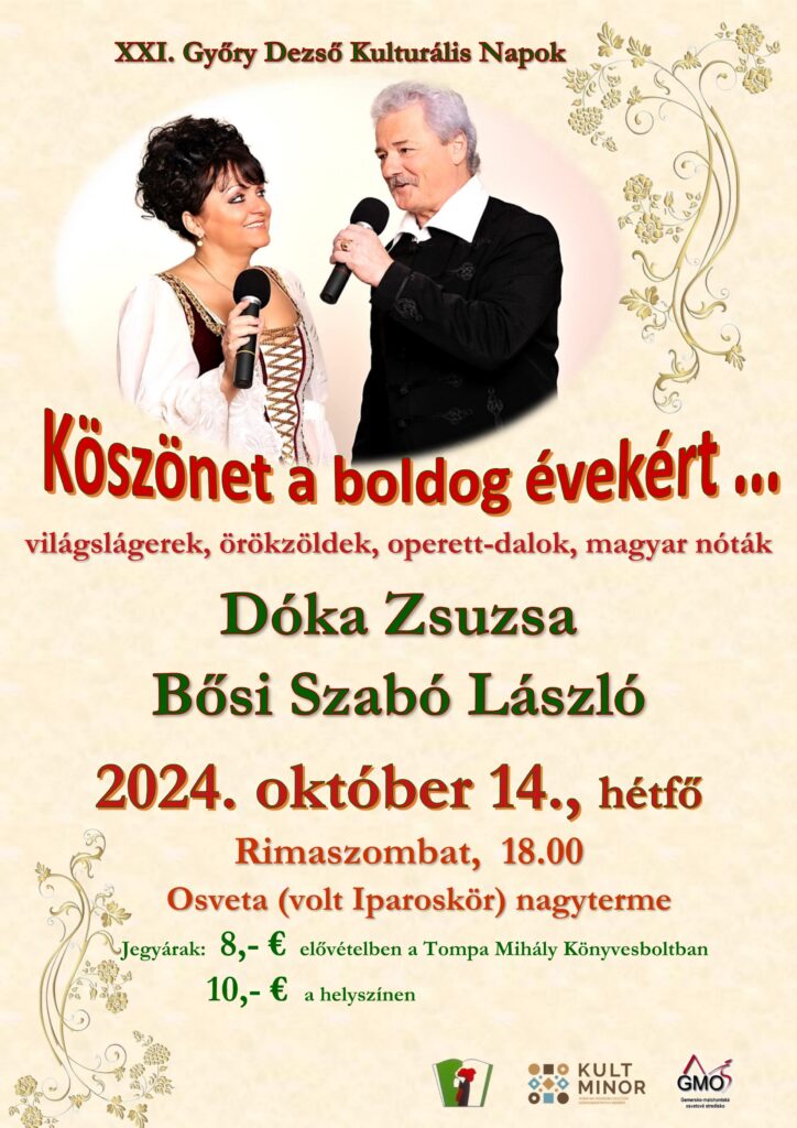 A Csemadok Rimaszombati Területi Választmánya szeretettel hívja az érdeklődőket Derzsi György és zenekara „Hol van az a nyár “ című műsorára, amely a XXII. Győry Dezső Kulturális Napok keretében valósul meg 2025. […] |