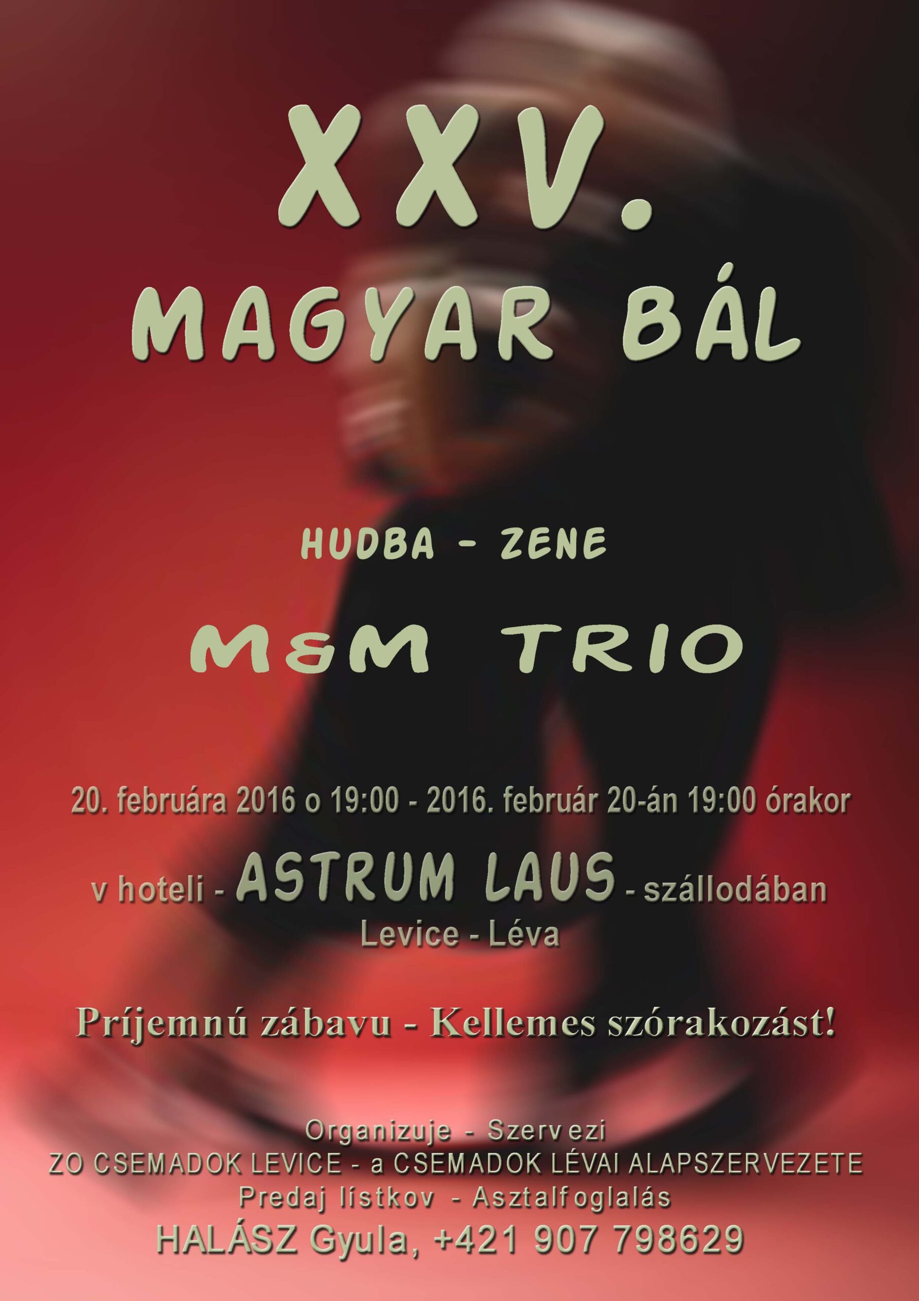 Jegyelővétel, asztalfoglalás 2016. február 15-től Papp Violánál a 0910 905751-es telefonszámon!!!