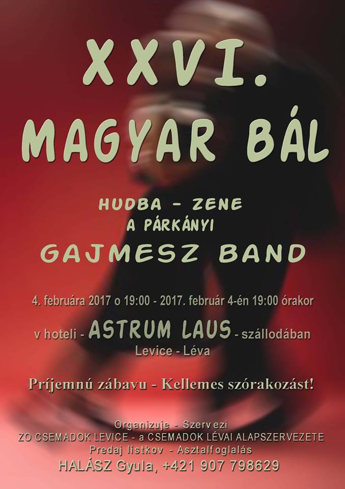 A Csemadok Lévai Alapszervezete tisztelettel meghívja Önt, kedves családját és barátait február 4-én, szombaton 19 órakor kezdődő XXVI. Magyar Bál-ra.