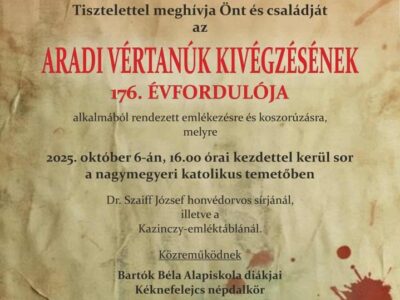 Szeretettel meghívjuk Önöket koszorúzási ünnepségünkre 2025. október 6-án a nagymegyeri katolikus temetőbe.